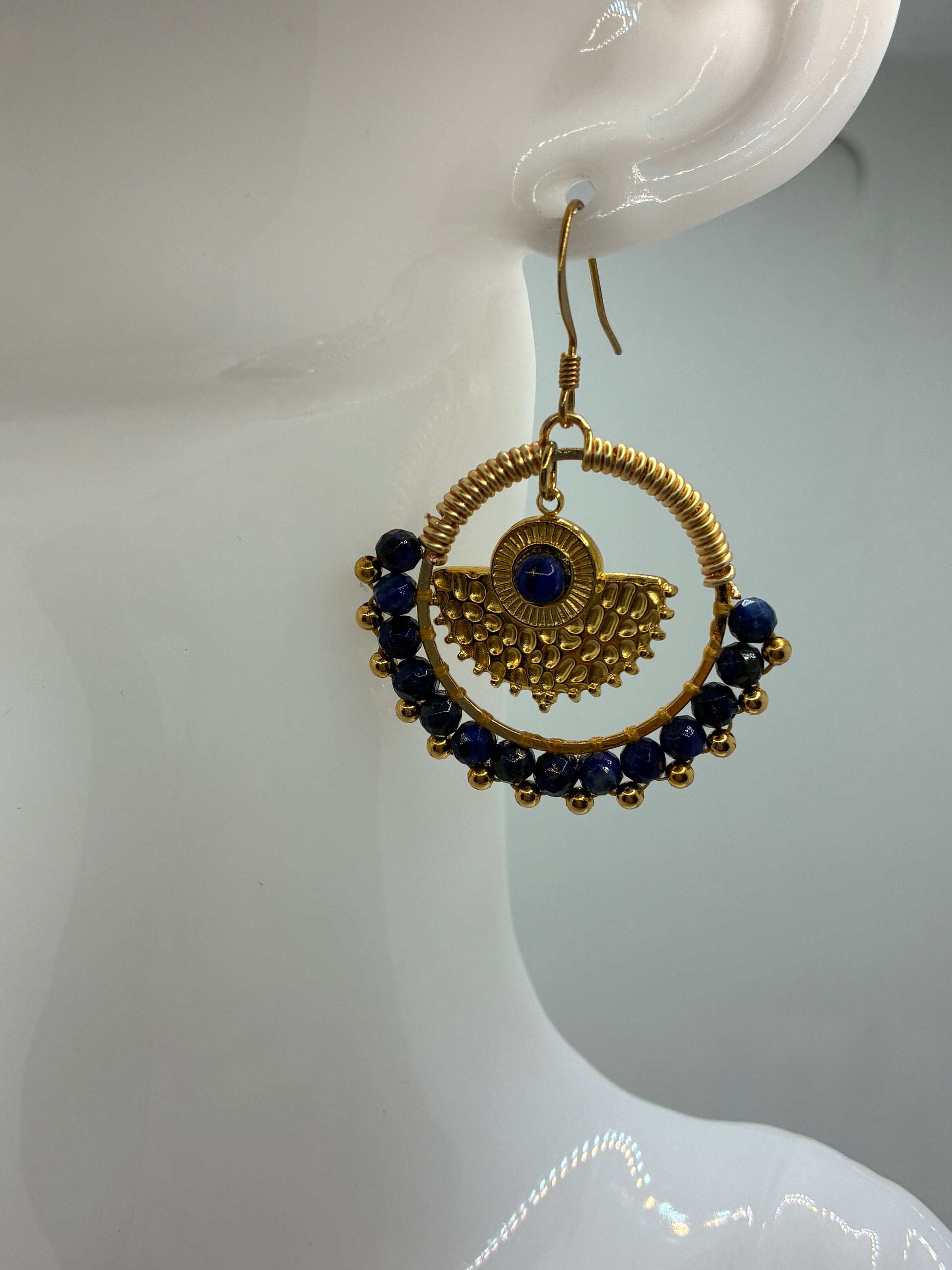 Boucles d'oreille en acier, métal doré à l'or fin et pierres naturelles (Lapis Lazuli).