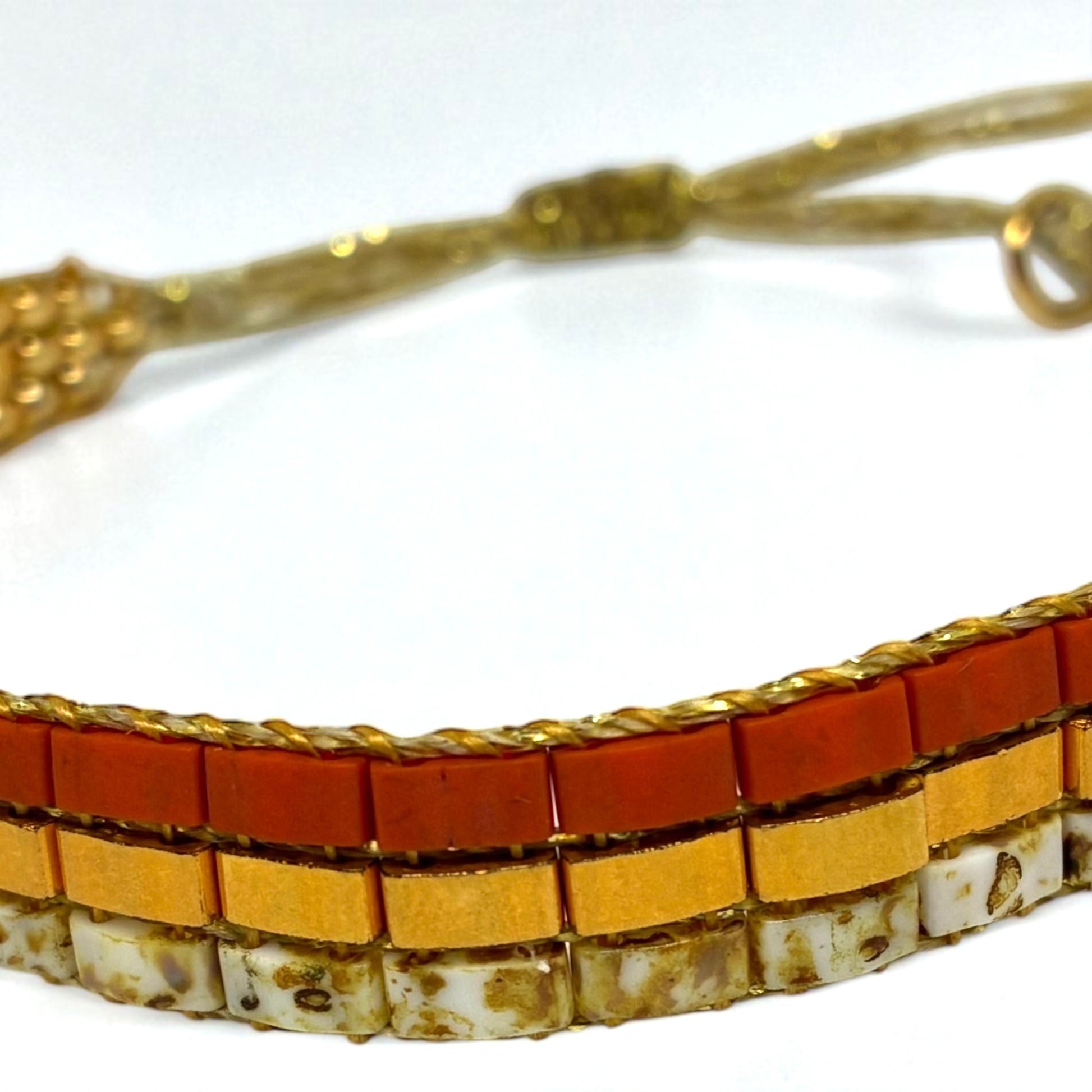 Ce bracelet réglable, composé de perles Tila japonaises et de perles de rocaille apportera la "touche finale" à vos tenues.