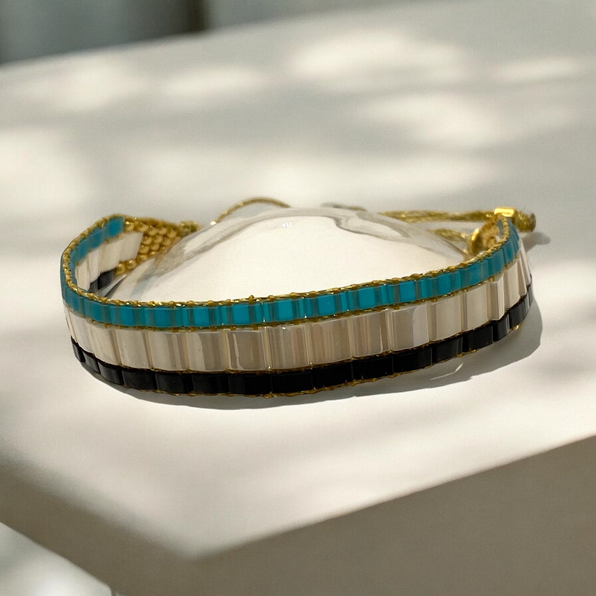 Ce bracelet réglable, composé de perles Tila japonaises et de perles de rocaille apportera la "touche finale" à vos tenues.