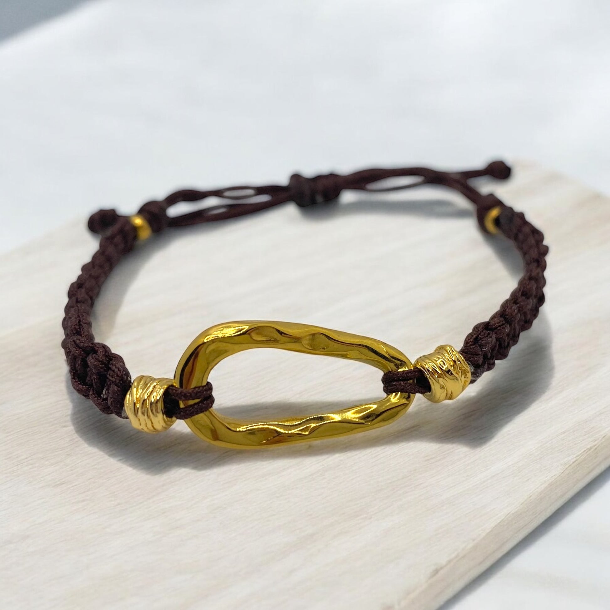 Bracelet mélangeant la souplesse et le confort du macramé avec une touche de modernité apportée par un maillon et des perles en acier inoxydable.