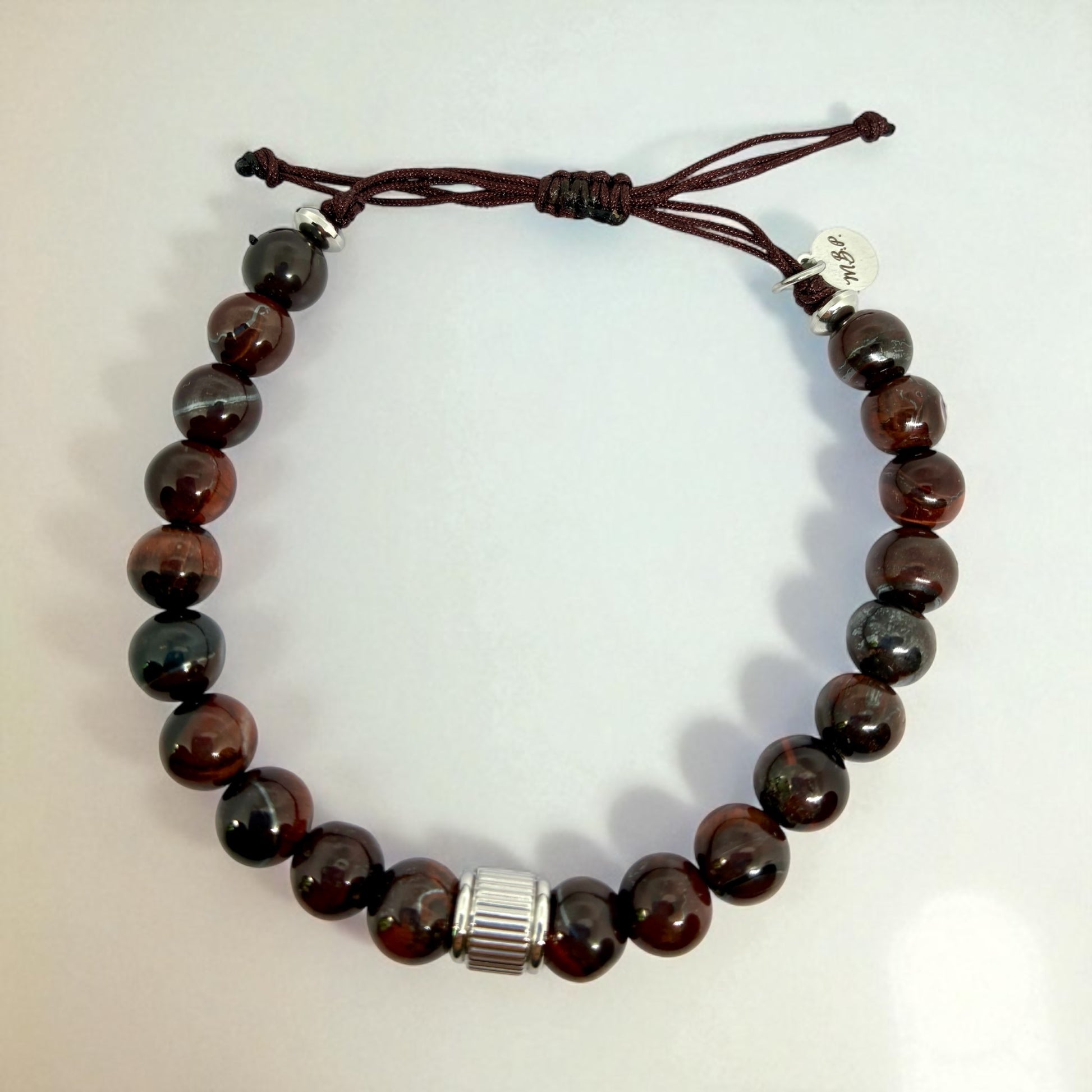 Bracelet réglable pour hommes en perles Chrysobéril ("Oeil de chat") et perles en acier.