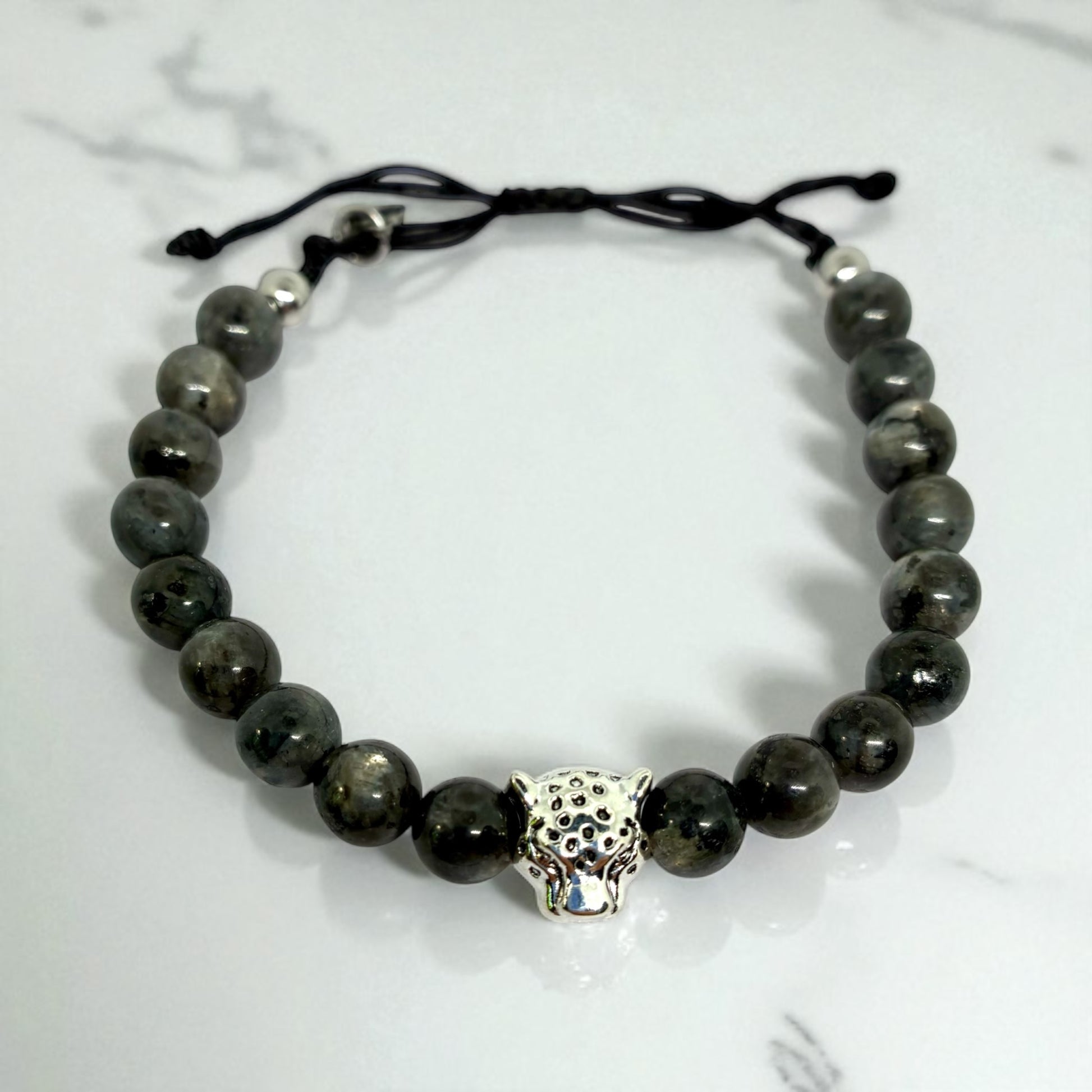 Bracelet réglable pour hommes en perles de Spectrolite et perles en acier.