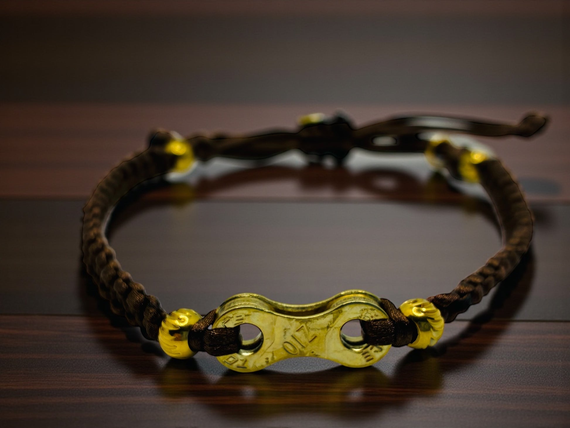 Imaginé pour les riders à vélo passionnés de sport en pleine nature, ce bracelet réglable est conçu en macramé autour d’un maillon de chaîne de vélo en acier accompagné de perles en acier.