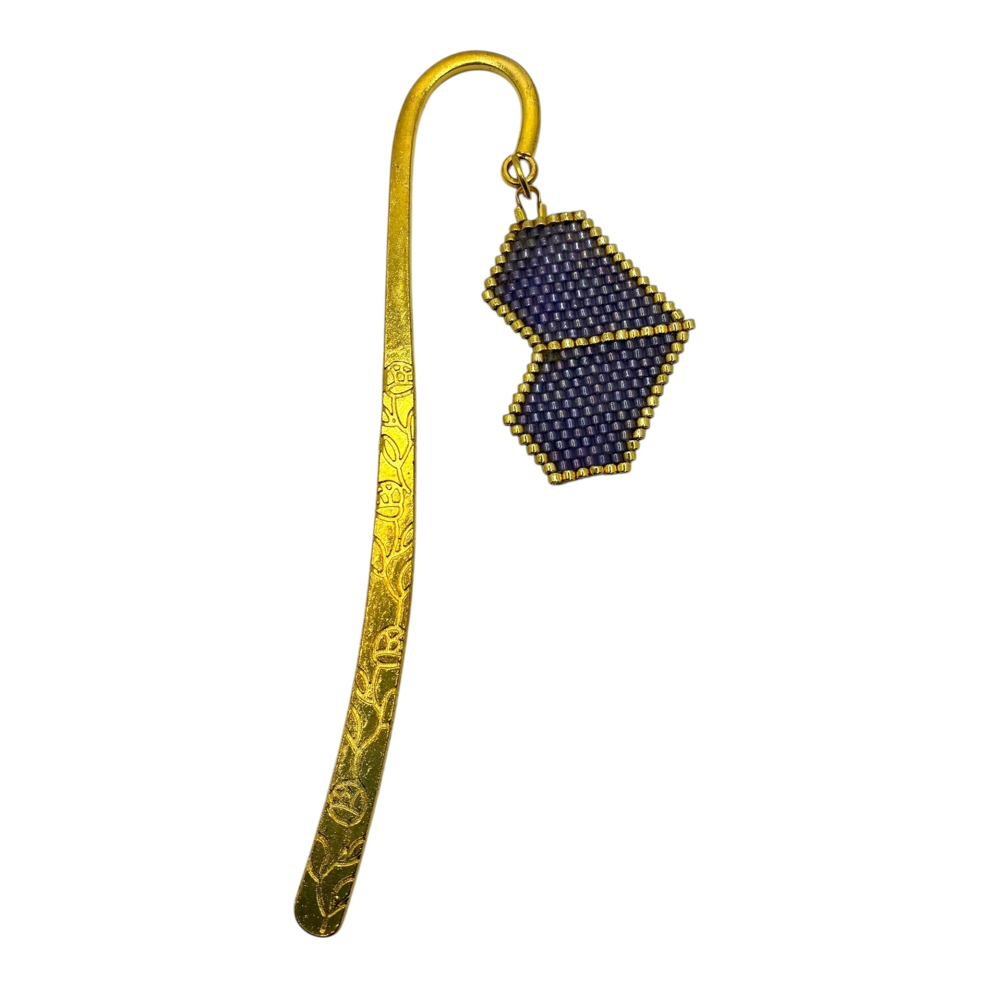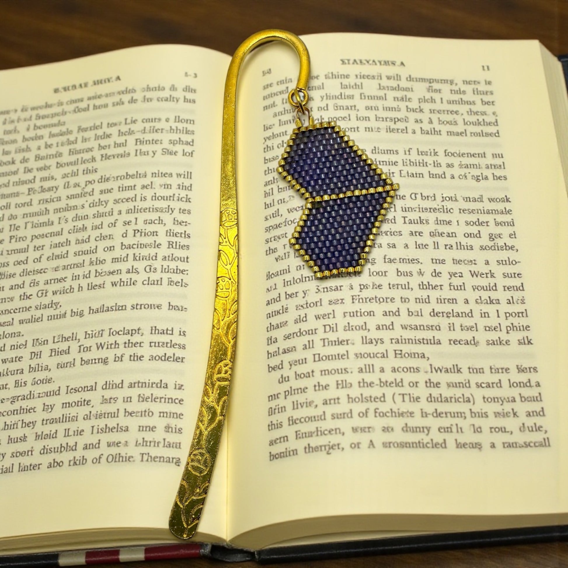 Marque page en métal doré et perles japonaises Miyuki tissées à la main dans mon atelier provençal
